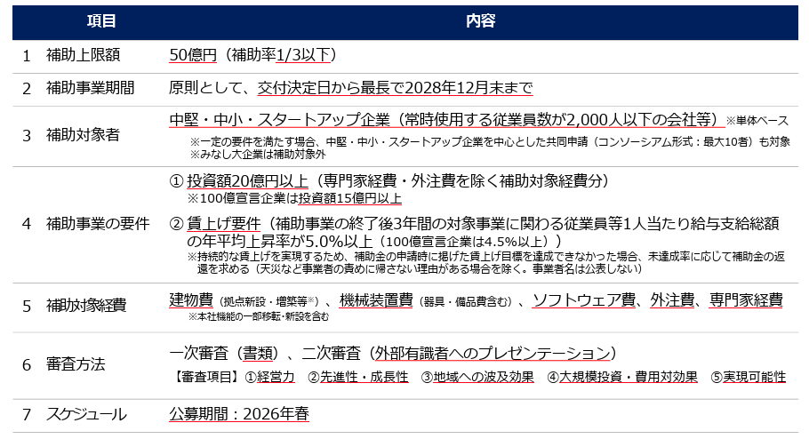 プロコン補助金では、別途「【2026年】大規模成長投資補助金の概要と採択分析等の紹介」記事も掲載しておりますので、併せてご参照ください。