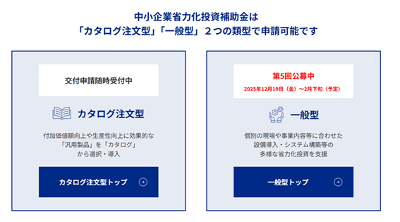 「省力化投資補助金」は、人手不足解消や生産効率向上のために省力化につながる設備導入を支援する補助金です。特徴的なのは、申請方式が「カタログ注文型」と「一般型」の二本立てになっている点です。